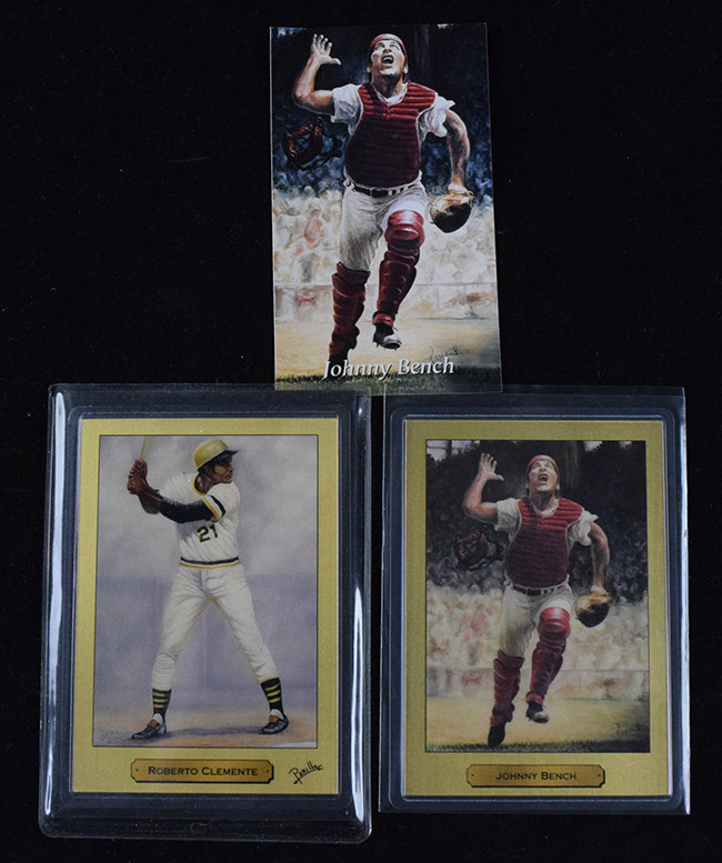 Description:Roberto Clemente and Johnny Bench limited edition gold baseball cards, 2-grams (NM-NM/MT). 1993 PM Cards #s 3 Roberto Clemente (#ed 599/1200), and 4 Johnny Bench (#ed 711/1200). Both come with Precious Metal Cards COA stating that the metal is gold, and the weight of the metal is One Gram: NM-NM/MT