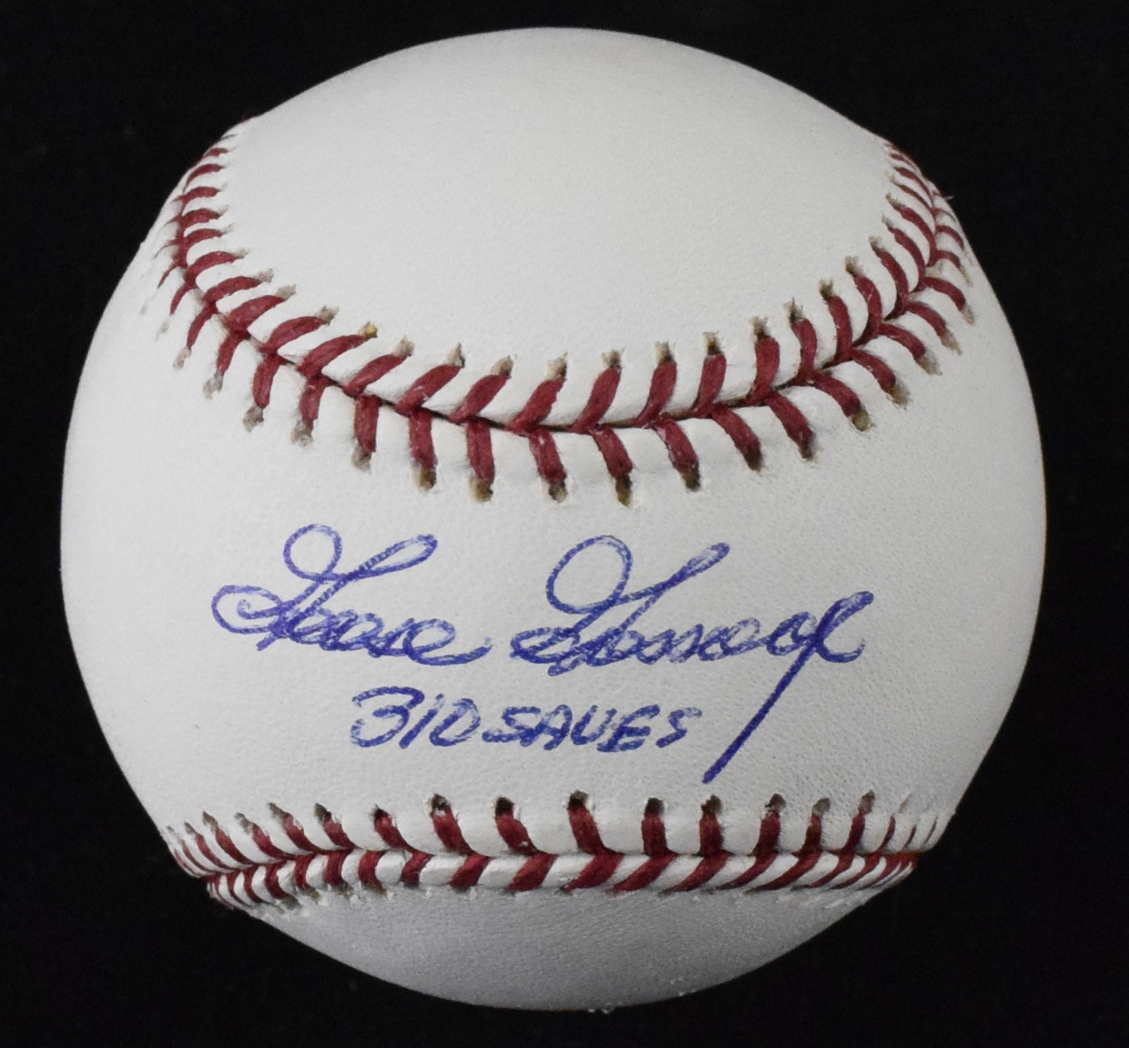 Description:Goose Gossage signed and inscribed B.Selig ML baseball (NM/MT). Gossage signed the sweet spot in blue ink and added "310 Saves" inscription. Signature rates 8/9 out of 10: NM/MT