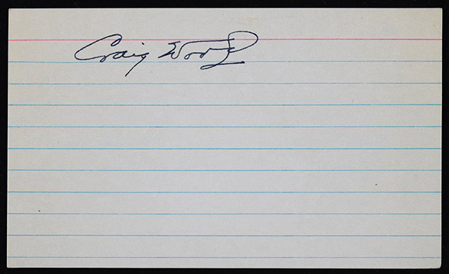 Description:Rare Craig Wood signed 3"x5" index card (d.1968, toughest Masters Champion) (Sig. NM) Lightly toned 3"x5" index card has been signed on the lined side in vintage fountain pen rating 8/9 out of 10. Wood won the Masters in 1941 and is considered that rarest of the select, and widely collected, group to attain the honor: Sig. NM ($500-$750)