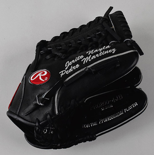 Description:Pedro Martinez professional model glove c.2009 (NM) Rawlings brand left handed model "PRO200-4JB" glove has "Pedro Martinez" embroidered on outer thumb below the names of his children, "Jerito" and "Nayla." Date code impressed on opposite side suggests manufacture c.2009 during his time with the Phillies and images confirm that he used a similar style embroidered in similar fashion. Unused: NM ($500-$1,000)