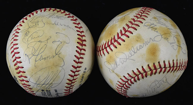 Description:1979 and 1980 Montreal Expos team signed baseballs (EX-EX/MT). Incl. C.Feeney NL ball signed by (25) members of the 1979 Expos: Dick Williams, Gary Carter, Andre Dawson, Tony Perez, Rusty Staub, Chris Speier, Larry Parrish, Warren Cromartie, Ellis Valentine, Steve Rogers, Dave Cash, Scott Sanderson, Jerry White, Elias Sosa, and others (EX/MT, toning); and C.Feeney NL ball signed by (23) members of the 1980 Expos: Dick Williams, Gary Carter, Steve Rogers, Chris Speier, Larry Parrish, Scott Sanderson, Bill Gullickson, Dave Palmer, and others (EX, toned). Signatures rate 5/6 to 9 (avg 7/8) out of 10: EX-EX/MT