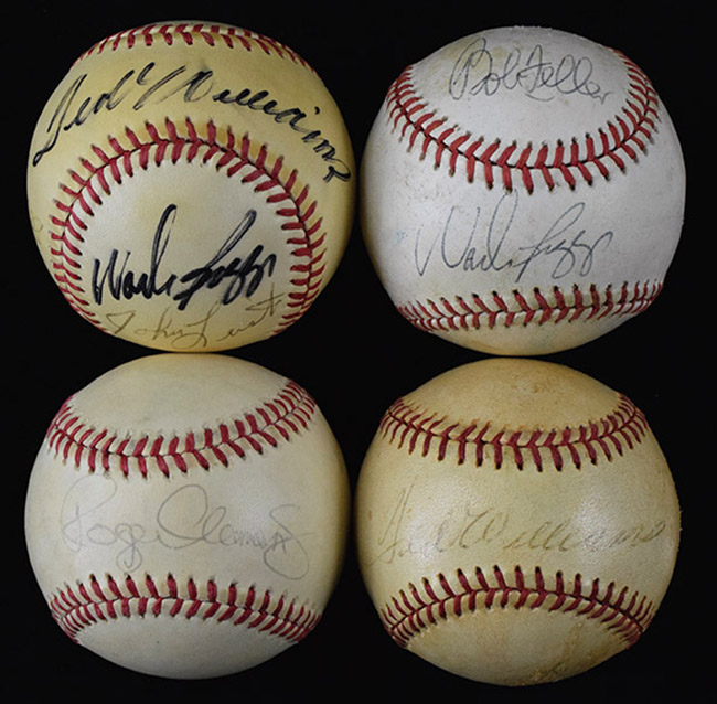 Description:Lot of (11) single and multi-signed baseballs including Ted Williams and other HOFers (VG-NM). Incl. B.Brown AL ball (toned) signed by Roger Clemens; G.Budig AL ball (toning) signed by Pedro Martinez; B.Selig ML ball signed by Dom DiMaggio; G.Budig AL ball (toned) signed by Bret Saberhagen; B.Brown AL ball (toning) signed by Dave Cone; G.Budig AL ball signed by Mo Vaughn; B.Brown AL ball (used) dual-signed by Ted Williams and Jim Rice (the Rice is very faded); B.Brown AL ball (used) dual-signed by Bob Feller and Wade Boggs; B.Brown AL ball (light toning) dual-signed by Sparky Anderson and Red Sox manager Joe Morgan; B.Brown AL ball (toned) signed by (6) Boston Red Sox including Ted Williams, Wade Boggs, Jim Rice, Bob Stanley, and others; and Official International League ball (toning) signed by (19) members of the 1987 Pawtucket Red Sox. Signatures rate 2 (Rice mentioned above) to 9/10 (avg 7) out of 10: VG-NM