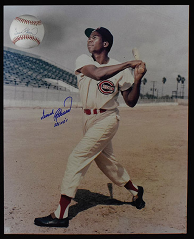 Description:Frank Robinson signed baseball plus signed & inscribed 16"x20" photo (NM-NM/MT). Incl. B.Brown AL ball signed by Robinson in blue ink; and 16"x20" photo signed by Robinson in blue marker with "586 HR's" inscription. Signatures rate 9 to 10 out of 10: NM-NM/MT