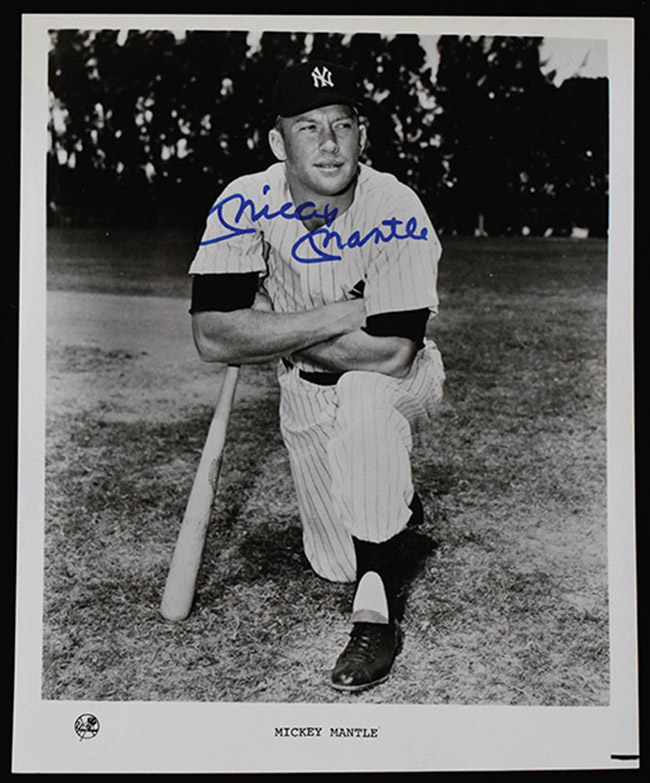 Description:Mickey Mantle signed 8"x10" photograph with JSA full LOA (NM). Mantle signed the photo in blue marker. Signature rates 9/10 out of 10. Comes with full LOA from JSA: NM