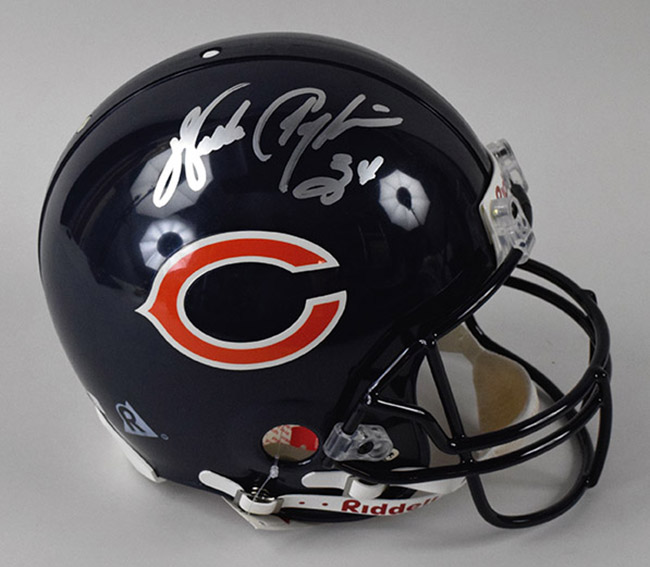 Description:Walter Payton signed Chicago Bears full sized ProLine helmet (EX/MT-NM) Top of the line Riddell VSR-4 Authentic OnField Bears helmet has been signed in silver marker, "Walter Payton." Signature rates 8-8/9 out of 10. Hint of extremely light wear has no effect on overall display value and is mentioned purely for accuracy: EX/MT-NM ($1,000-$1,500)