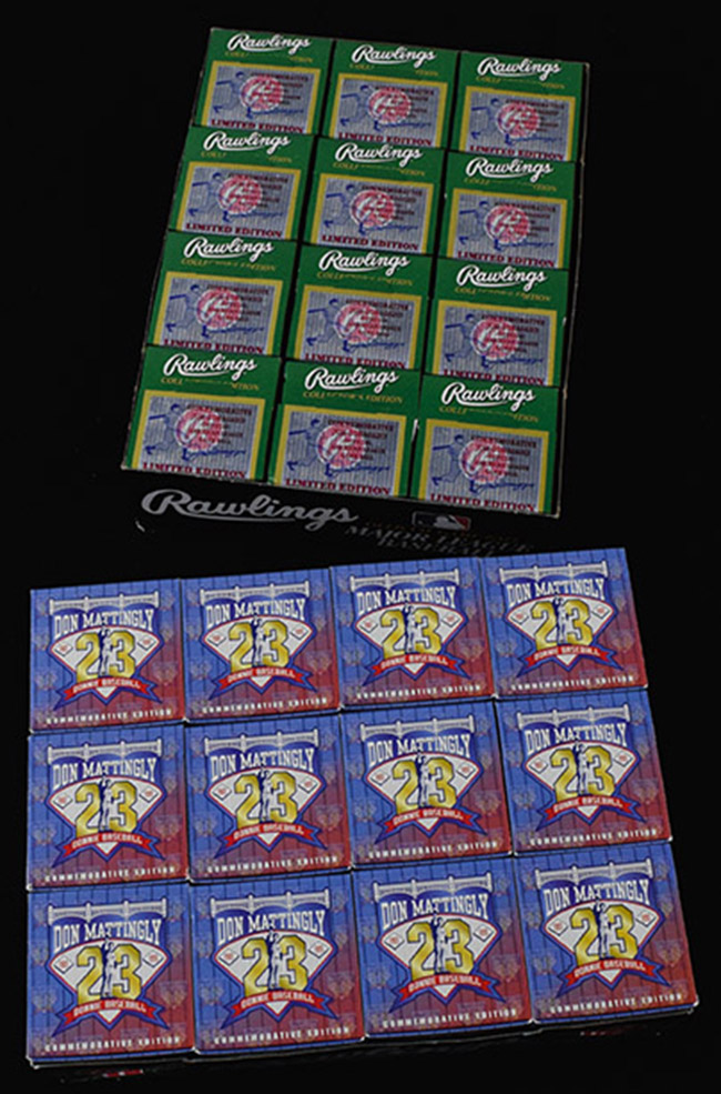 Description:Cases of (12) Joe DiMaggio and (12) Don Mattingly unused/unsigned commemorative baseballs (NM-MT). Incl. (12) commemorative Joe DiMaggio official American League baseballs; and (12) Rawlings 1997 "Don Mattingly Day" commemorative baseballs. All are unused/unsigned, and come with their original boxes: NM-MT