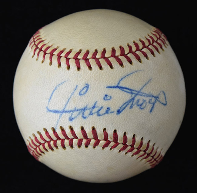 Willie Mays vintage signed C.Feeney NL baseball (EX/MT). Mays signed the sweet spot in blue ink. Signature rates 8 out of 10. Minor toning: EX/MT