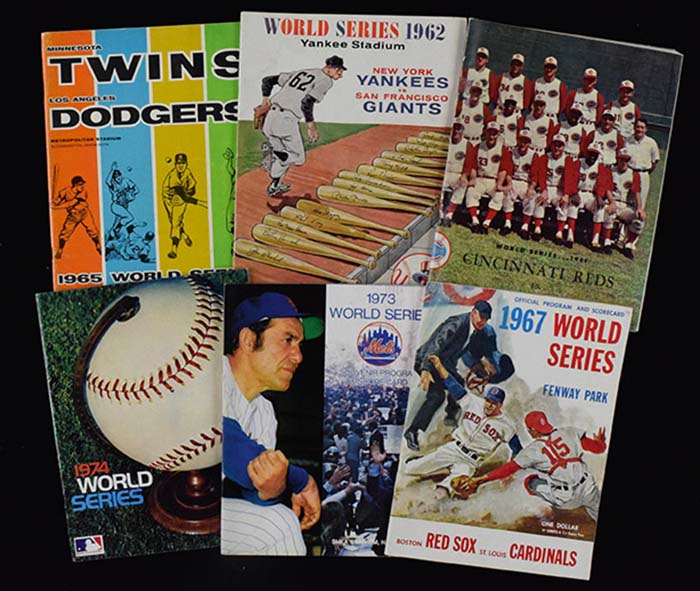Description:Lot of (8) World Series programs from 1961-1979 (EX-NM). Incl. 1961 Crosley Field version, 1962 Yankee Stadium version, 1965 Metropolitan Stadium version, 1967 Fenway Park version, 1973 Shea Stadium version, 1974, 1977, and 1979: EX-NM