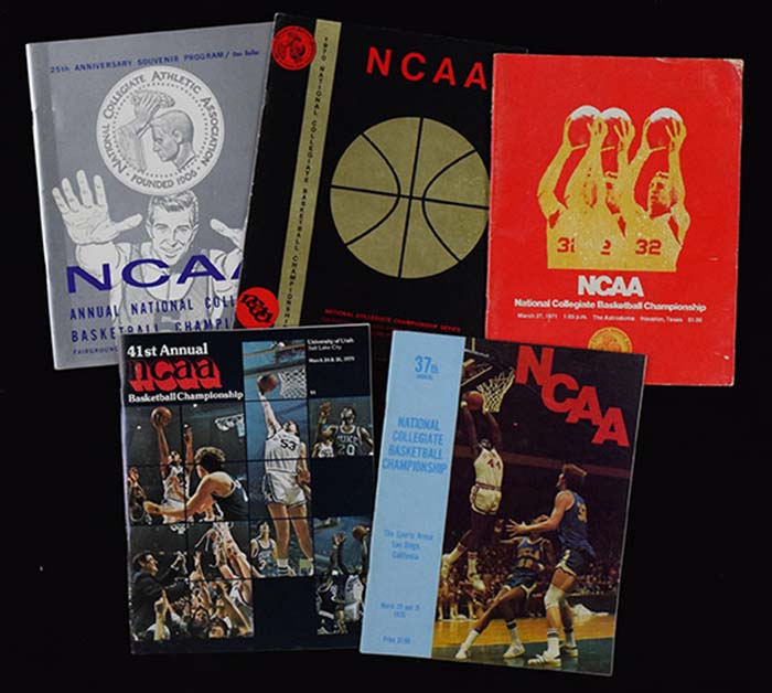 Description:Lot of (5) NCAA Final Four programs from 1963-1979 (EX-NM). Incl. 1963 won by the Loyola Ramblers (EX/MT); 1970 won by the UCLA Bruins (EX/MT); 1971 also won by UCLA (EX); 1975 won again by UCLA in John Wooden's final game (EX/MT); and 1979 won by Michigan State with Magic Johnson named Most Outstanding Player (NM, includes program inserts). Range: EX-NM