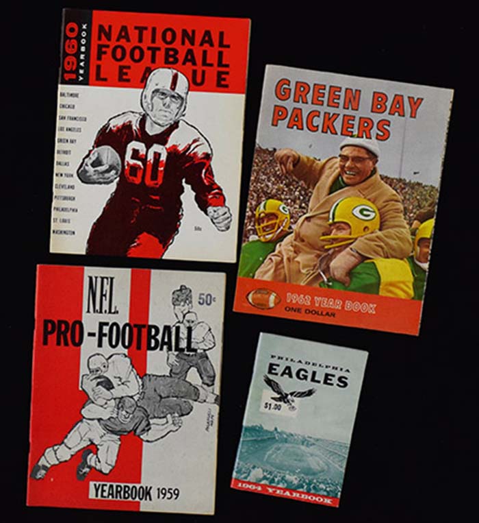 Description:Lot of (4) NFL yearbooks from 1959-1964 including 1962 Packers (EX/MT-NM). Incl. 1959 NFL yearbook (EX/MT), 1960 NFL yearbook (EX/MT-NM), 1962 Green Bay Packers yearbook (EX/MT-NM), and 1964 Philadelphia Eagles yearbook (NM). Range: EX/MT-NM
