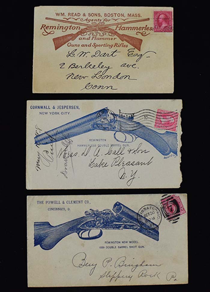 Description:Lot of (3) early Remington covers c.1890s-1900s (VG-EX) Choice trio of early covers which feature illustrations of Remington guns. All postally cancelled with mild wear. One has torn right edge: VG-EX