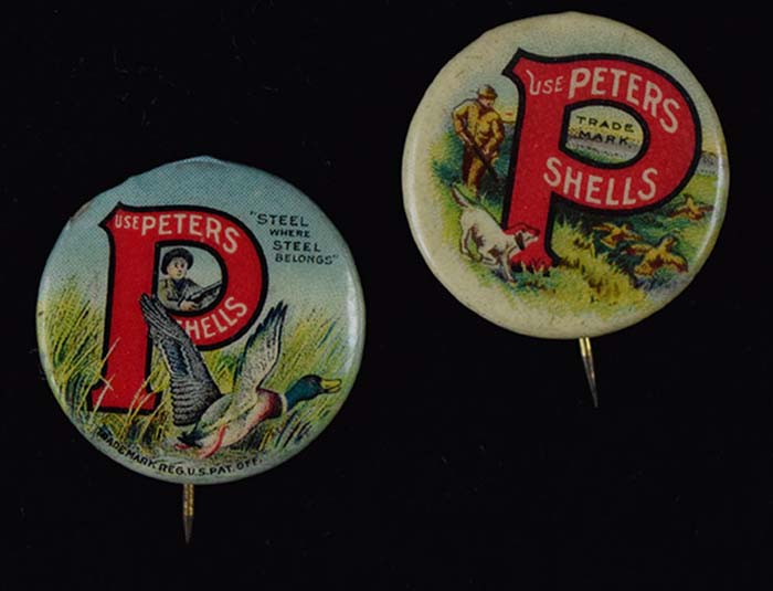 Description:Peters Shells advertising pins with animal graphics lot of (2) (VG/EX-EX/MT) Pair of 1" pins, each having animals incorporated into design. Both have original Bastion paper inserts on back. Light wear with (1) pin (duck) having a small imperfection at top: EX-EX/MT