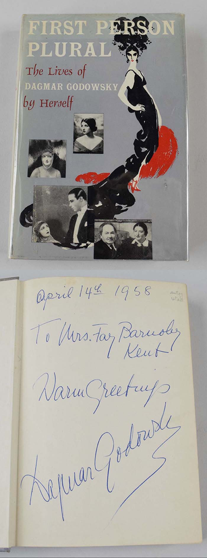 Description:Dagmar Godowsky signed 1958 "First Person Plural" hardcover autobiography (EX/MT). Godowsky signed the front endpaper in blue ink (dated "April 14th 1958" and personalized). Signature rates 9/10 out of 10. Mostly minor age/handling wear: EX/MT
