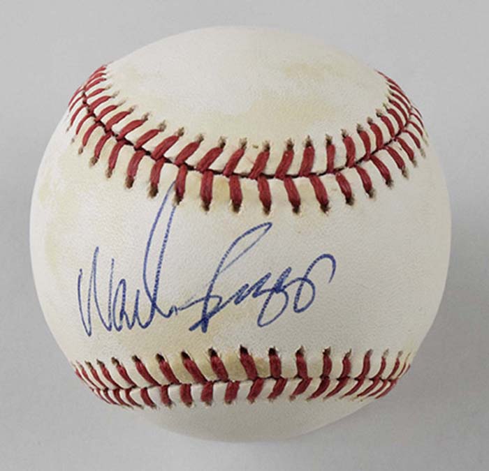 Description:Wade Boggs signed B.Brown AL baseball (EX/MT). Boggs signed the sweet spot in blue ink. Signature rates 8/9 out of 10. Areas of light toning are visible: EX/MT
