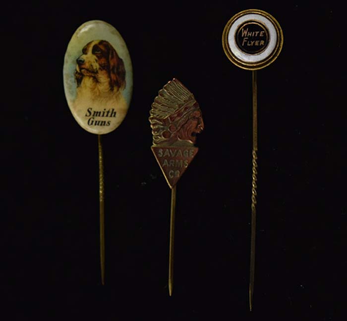 Description:Lot of (3) vintage advertising stick pins incl. Smith Guns, Savage Arms, and White Flyer (EX-EX/MT) Trio of early advertising stick pins includes die-cut "Savage Arms Co" Native American themed, oval "Smith Arms" color lithographed, and enameled "White Flyer." Light to mild toning and wear: EX-EX/MT