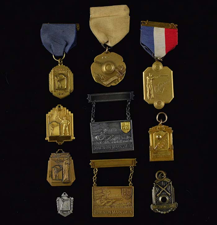 Description:Lot of (10) asst. shooting related medals and/or presentational charms c.1930s-40s (Overall EX) Interesting mix of presentational medallions, charms, and awards dating to the 30s and 40s. Some have winner and/or events names/dates engraved. One small charm is marked "Sterling" and (1) is Dieges & Clust 1/10th 10K G.F. Varying degrees of wear throughout: Overall EX