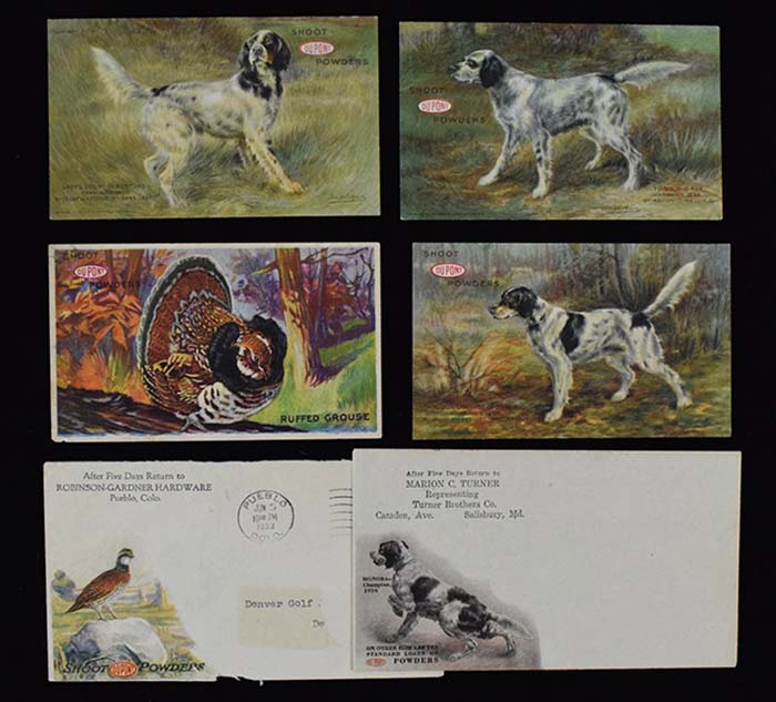 Description:Lot of (2) Dupont Powders illustrated advertising envelopes and (6) postcards (EX-EX/MT) Nice pair of well illustrated advertising envelopes showing a dog and bird. Postcards are all unused and show an assortment of animals. Light wear: EX-EX/MT