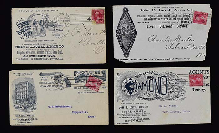 Description:Lot of (4) Lovell Arms and/or Diamond Bicycles advertising covers (VG-EX) Very nice grouping as relates to the famed Arms and Bicycle Company. Three are opened (torn or cut) along right edge. Light toning and light to mild general handling and age wear: VG-EX