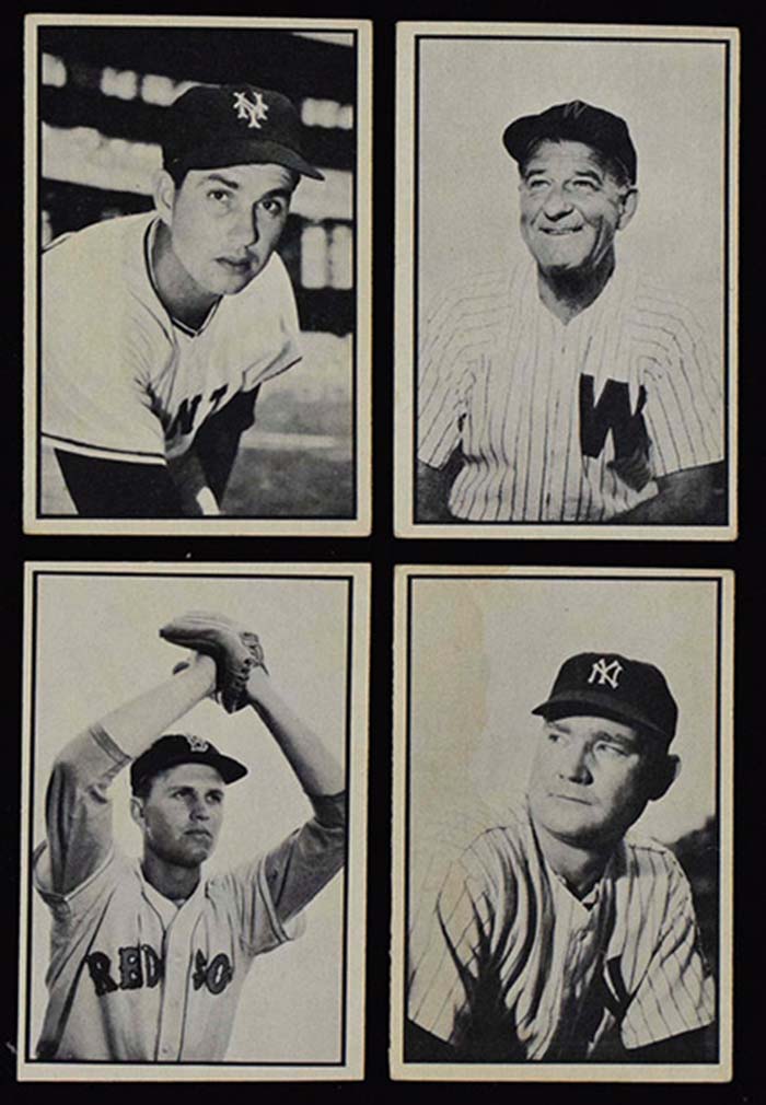 Description:1953 Bowman black and white complete set of (64) cards (Range PR-EX/MT, Avg. EX) Ideal set for upgrading with commons being much stronger than keys. Full range of PR-EX/MT with perhaps (1) or (2) cards falling at low end of range and a handful of EX/MT. Keys: #Mize (VG with some very light staining), 27 Lemon (GD/VG), 28 Wilhelm (VG/EX-EX), 39 Stengel (PR), 46 Harris (VG/EX OC): Range PR-EX/MT, Avg. EX ($500-$750)