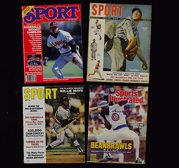 Description:Hal Newhouser, Willie Mays, Reggie Jackson, Andre Dawson signed publications from 1949-1987 (VG/EX-NM). Incl. 1949 Sport signed by Hal Newhouser (VG/EX); June 1967 Sport signed by Willie Mays (VG/EX-EX); May 1982 Sport signed by Reggie Jackson (NM); and July 20th 1987 Sports Illustrated signed by Andre Dawson (EX/MT-NM). Signatures rate 8/9 to 10 out of 10: VG/EX-NM