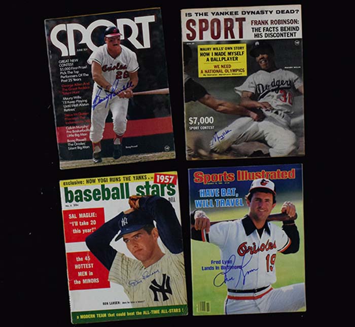 Description:Lot of (14) signed publications from 1957-1989 (VG/EX-NM/MT). Incl. 1957 Baseball Stars signed by Don Larsen, June 1963 Sport signed by Maury Wills, June 1971 Sport signed by Boog Powell, April 7th 1975 Sports Illustrated signed by Steve Garvey, March 18th 1985 Sports Illustrated signed by Fred Lynn, 1987 California Angels program signed by Jack Howell, May 25th 1987 Sports Illustrated signed by Eric Davis, 1987 Los Angeles Dodgers program signed by Pedro Guerrero, 1988 Baltimore Orioles program signed by Mike Boddicker, June 1988 Baseball Card Price Guide signed by Matt Nokes, 1989 San Diego Padres spring training program signed by Jack McKeon, 1989 San Francisco Giants spring training program signed by Will Clark, June 1989 Baseball Today signed by Jim Abbott, and 1989 Pittsburgh Pirates program signed by John Smiley. Signatures rate 8/9 to 10 out of 10. Most appear to average EX-EX/MT overall. Range: VG/EX-NM/MT