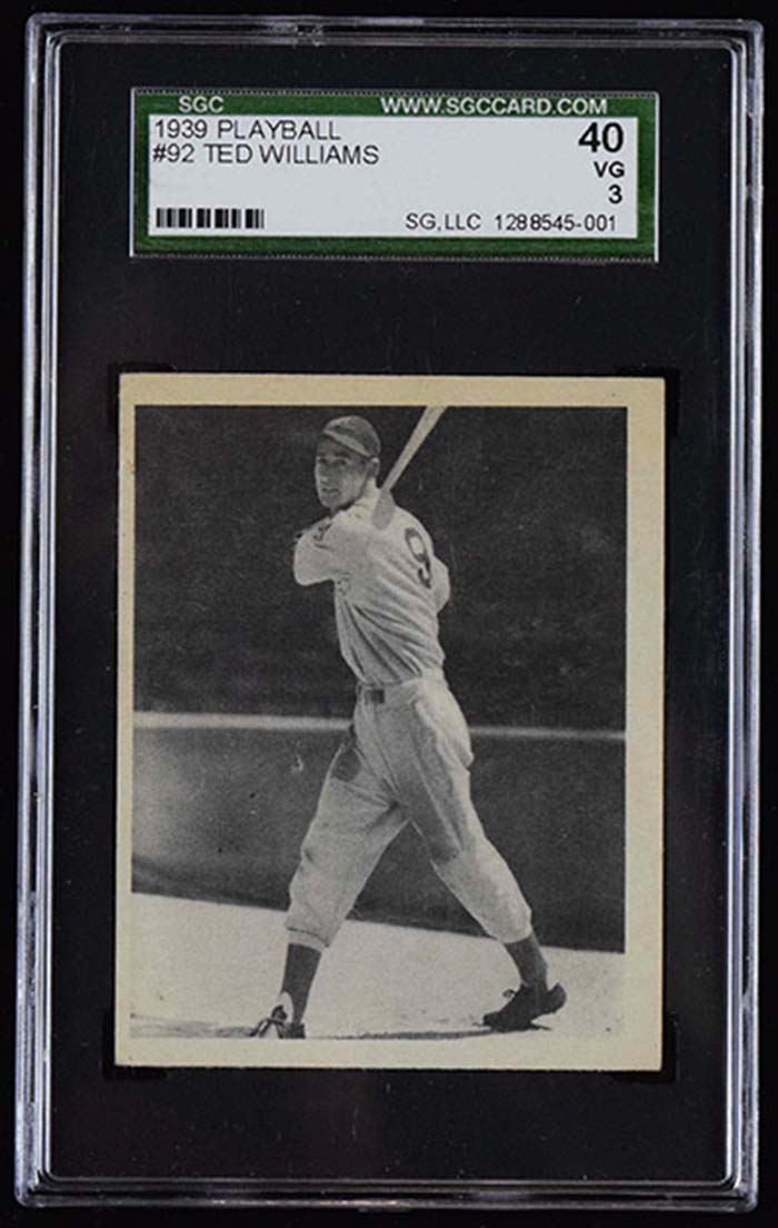 1939 Playball #92 Ted Williams (SGC 40 VG) Nice example with a hint of wear and centering which favors left edge: SGC 40 VG ($400-$600)