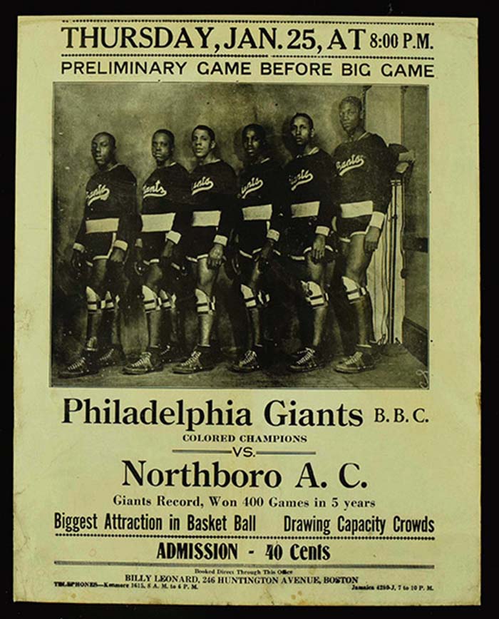 Description:Very rare 1930s "Colored Champions" Philadelphia Giants B.B.C. advertising broadside (see description) Original period advertising display has a black and white photo of team members printed at center with "Philadelphia Giants B.B.C. Colored Champions vs. Northboro A.C." noted below. It appears that the top has been trimmed off and the piece currently measures 11"x14". Mounted to conservation backing with some mild restoration done at corners/edges. Otherwise displays moderate corner/edge wear with some small tears/chips: see description ($300-$500)