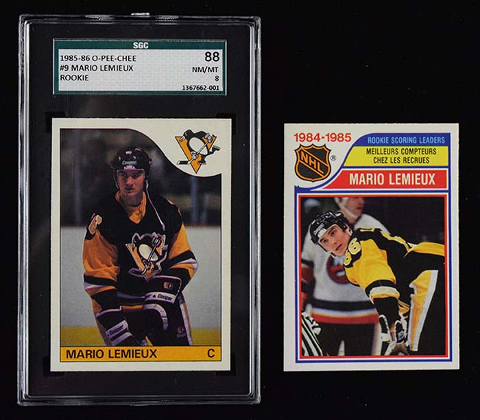 1985-86 OPC #9 Mario Lemieux Rookie (SGC 88 NM/MT) #262 Scoring Leaders (NM-MT) Pair of crisp high grade cards: SGC 88 NM/MT and NM/MT