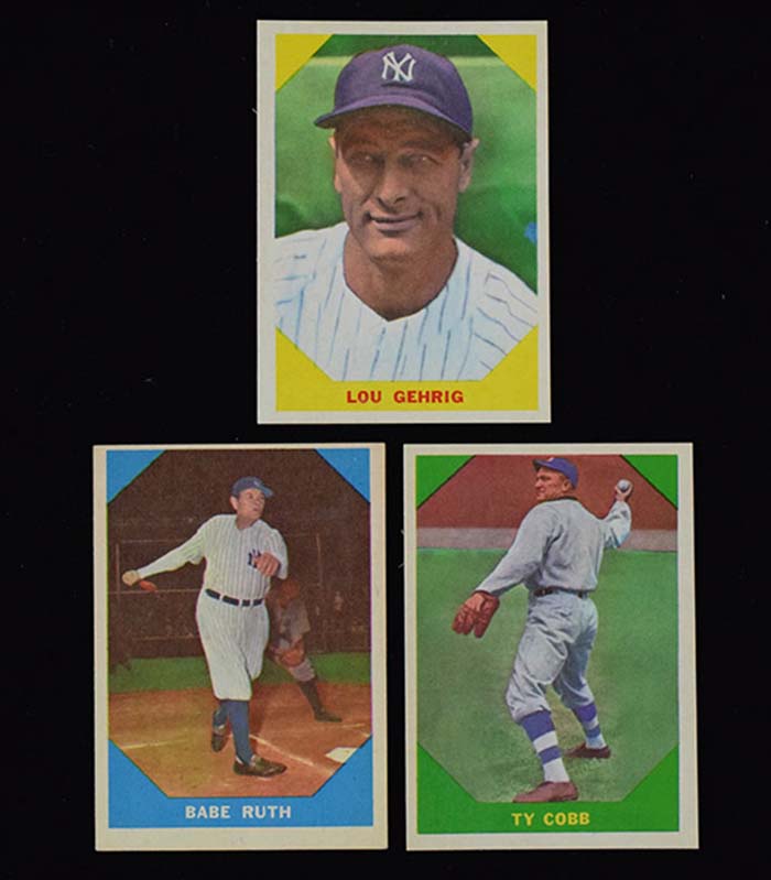 Description:1960 Fleer Baseball Greats complete set of (79) cards - almost all pack fresh (Mostly NM-NM/MT with a few lesser) Very sharp high end set with perhaps (3) or (4) cards dipping below the NM level and most NM-NM/MT. Keys: #1 Lajoie (EX-EX/MT), 3 Ruth (EX-EX/MT OC), 28 Gehrig (NM/MT), 42 Cobb (NM/MT), 72 Williams (NM/MT): Mostly NM-NM/MT with a few lesser