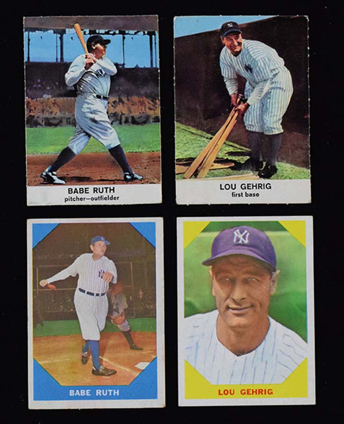 Description:1960 Fleer Baseball Greats near set (GD-NM) and 1961 Golden Press complete set (GD-EX/MT) 1960 Fleer near set missing (2) cards (#s 6 and 72). Keys: #3 Ruth (VG/EX), 28 Gehrig (VG/EX-EX), and 42 Cobb (VG/EX-EX). Balance is mostly avg. EX/MT with a few NM cards, range runs GD-NM with very few falling at lower end; 1961 Golden Press complete set of (33) cards in avg. VG/EX with GD-EX/MT range: GD-NM