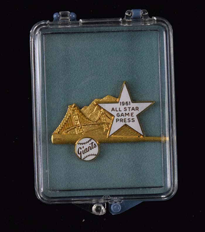 1961 All-Star Game press pin (at San Francisco) (NM) Original pin remains housed as issued in box. No mentionable wear: NM