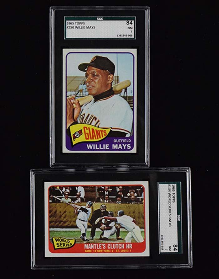 1965 Topps #s 134 Mickey Mantle and 250 Willie Mays both graded SGC 84 (NM).