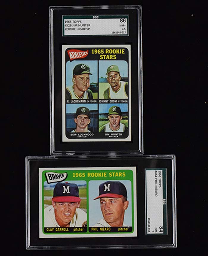 1965 Topps #s 461 Phil Niekro (SGC 84 NM), and 526 Catfish Hunter rookie (SGC 86 NM+).