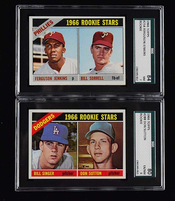 1966 Topps #s 254 Fergie Jenkins rookie (SGC 84 NM), and 288 Don Sutton rookie (SGC 80 EX/NM).