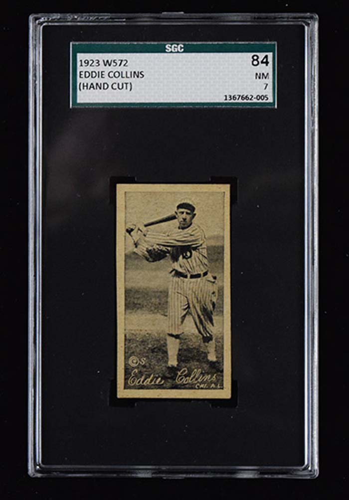 1923 W572 Eddie Collins strip card (SGC 84 NM) Hand cut card has crisp corners and edges with little mentionable wear: SGC 84 NM