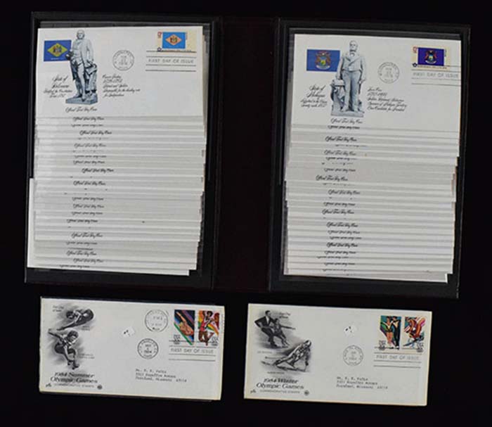 Description:Large lot of approx. (600) First Day Covers, c.1940s-90s (NM overall). The majority are from the 1960s-80s, and nearly all are protected in sleeves. Nice selection of subjects including "Flags of the 50 States", Bicentennial, and American Revolution: NM overall