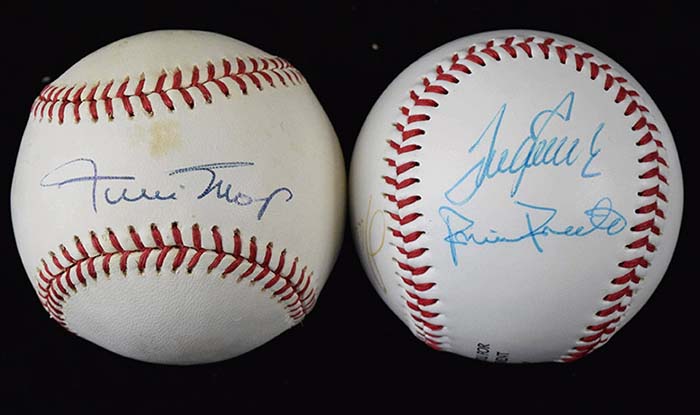 Description:Willie Mays single-signed baseball, plus HOFers multi-signed baseball (EX-NM). Incl. W.White NL ball signed by Willie Mays (EX-EX/MT, minor toning); and 1999 B.A.T. ball signed by (5) including Robin Roberts, Bob Gibson, Jim Palmer, Sandy Koufax, and Tom Seaver. Signatures rate 7 (Koufax) to 9/10 (avg 8/9) out of 10: EX-NM