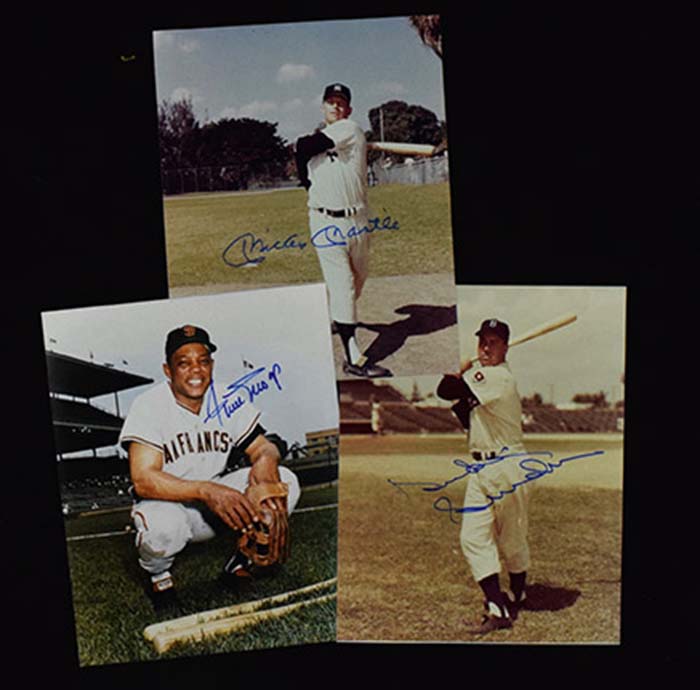 Description:Mickey Mantle, Duke Snider, and Willie Mays signed 8"x10" photographs (NM-NM/MT). All three players signed their photo in blue marker. Signatures rate 9 to 10 out of 10: NM-NM/MT