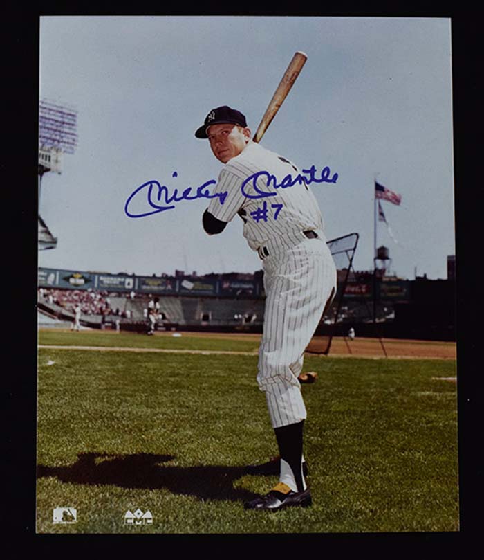 Description:Mickey Mantle signed 8"x10" photograph with "#7" inscription (NM). Mantle signed the photo in blue marker and added "#7" inscription. Signature rates 9/10 out of 10: NM
