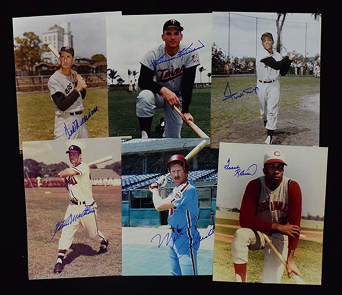 Description:Lot of (11) 500 HR Club members signed 8"x10" photographs (EX-NM/MT). Incl. Ted Williams (crease), Harmon Killebrew, Eddie Mathews, Mike Schmidt, Willie Mays, Frank Robinson, Willie McCovey, Eddie Murray, Mark McGwire, Gary Sheffield (rookie era autograph), and Rafael Palmeiro. Signatures rate 6/7 (Palmeiro) to 10 (avg 9) out of 10: EX-NM/MT