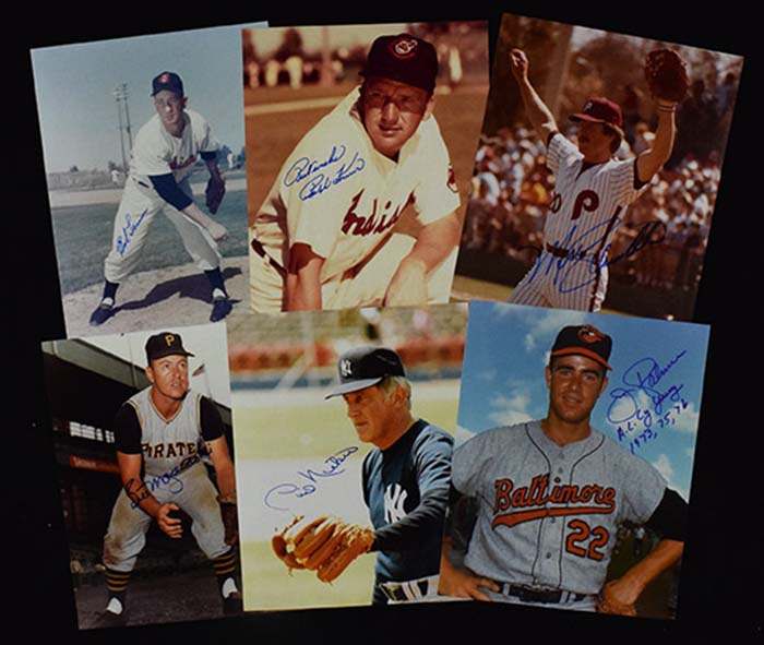 Description:Lot of (16) Baseball HOFers signed 8"x10" photographs (NM-NM/MT). Incl. Ralph Kiner, Robin Roberts, Bob Lemon, Duke Snider, Warren Spahn, Mike Schmidt, Cal Ripken Jr, Bill Mazeroski, Phil Niekro, Jim Palmer with "AL Cy Young 1973, 75, 76" inscription, Gaylord Perry, Brooks Robinson, Ozzie Smith, Don Sutton, Pete Rose, and Dick Williams. Signatures rate 5/6 (Snider) to 10 (avg 8/9) out of 10: NM-NM/MT
