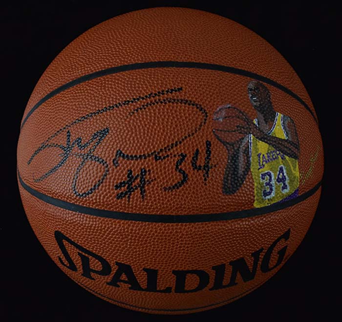 Description:Shaquille O'Neal signed portrait basketball (NM). D.Stern official NBA basketball featuring a hand painted image of Shaquille O'Neal. Shaq signed the ball in black marker and added "#34" inscription. Signature rates 9 out of 10: NM