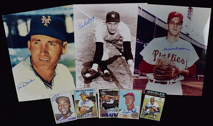 Description:Lot of (24) signed baseball cards & (47) signed 8"x10" photographs (VG-NM/MT). Signed baseball cards include Vic Power, Mike Cuellar, Jose Pagan, Dick Hall, Elrod Hendricks, Jim Lonborg, Tom Underwood, Willie Montanez, Ken Macha, Grant Jackson, Jerry Martin, Richie Hebner, John Montefusco, Glenn Wilson, Gary Redus, Warren Brusstar, Marty Bystrom, Dick Ruthven, Steve Bedrosian, Milt Thompson, Don Carman, Len Matuszek, Wayne Gomes, and Carlos Silva. Signed photos include Mickey Vernon, Frank Baumholtz, Lou Burdette, Al Dark, Harry Walker, Art Mahaffey, Johnny Klippstein, Gus Zernial, Willy Miranda, Don Bollweg, Dick Whitman, Ken Raffensberger, Hank Sauer, Bobby Wine, Barney McCosky, Russ Meyer, Carl Scheib, Eddie Pellagrini, Steve Ridzik, Ned Garver, Ken Silvestri, John Gray, Ray Herbert, Spook Jacobs, Jack Sanford, Ed Keegan, Allie Clark, Joe Coleman, Tom Ferrick, Billy DeMars, Dick Hall, Joe Lonnett, Jose Cardenal, Lou Brissie, John Montefusco, Wayne Twitchell, Larry Christianson, Bob Tolan, Richie Hebner, Dickie Noles, Warren Brusstar, Marty Bystrom, Len Matuszek, Bill Champion, Lee Elia, Bill Laxton, and Jeff Stone. Signatures rate 7/8 to 10 (avg 8/9) out of 10: NM overall