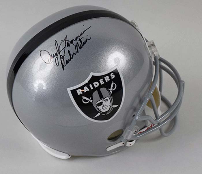 Description:Daryle Lamonica signed & inscribed Oakland Raiders full size helmet, JSA (NM). Riddell full size Raiders replica helmet signed by Lamonica in black marker with "Raider Nation" inscription. Signature rates 9 out of 10. Comes with COA from JSA (serial #ed sticker is affixed): NM