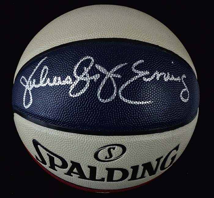 Description:Julius Erving signed Rawlings ABA throwback basketball, JSA (NM/MT). Erving signed the ball in silver marker and added "Dr. J" nickname. Signature rates 9/10 out of 10. Comes with COA from JSA (serial #ed sticker is affixed): NM/MT