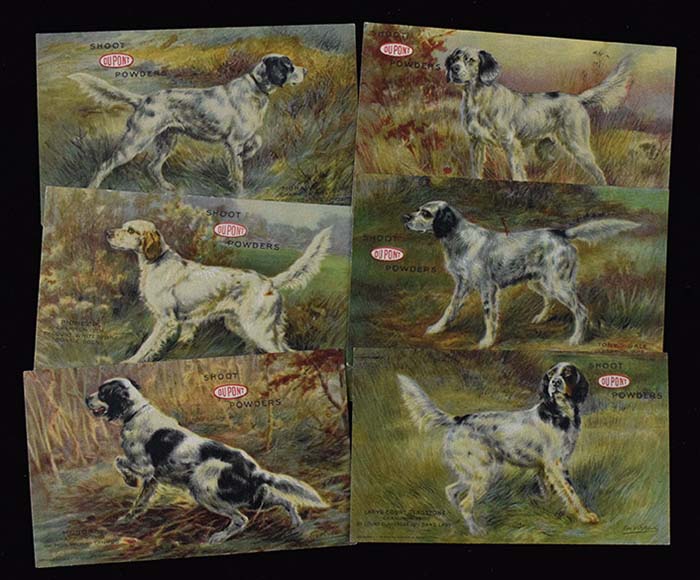 Description:DuPont Powders dog series advertising postcard set (13) (Mostly EX/MT-NM) Very nice grouping of (13) different in strong overall condition with (1) card technically graded lesser than EX/MT-NM due to some very small pencil notations. Unknown if a complete set. Includes an original envelope with DuPont Company name which is postcard sized (envelope PR): Mostly EX/MT-NM ($400-$600)