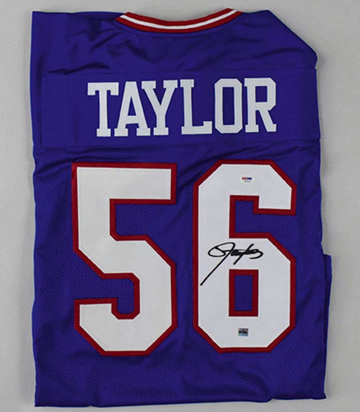 Description:Lawrence Taylor signed New York Giants style jersey, PSA/DNA (NM). Size L #56 Lawrence Taylor jersey signed by Taylor in black marker. Signature rates 9 out of 10. Comes with PSA/DNA and Sports Integrity COAs (Sports Integrity and PSA/DNA stickers are affixed). No maker tagging is present: NM