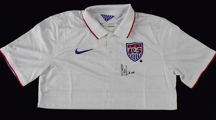 Description:Clint Dempsey signed United States soccer jersey, Steiner (NM). Nike size L United States jersey signed by Dempsey in black marker. Signature rates 8/9 out of 10. Comes with Steiner COA (serial #ed hologram sticker is affixed): NM