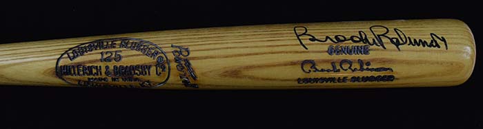Description:Brooks Robinson signed replica model baseball bat (NM). 35" Louisville Slugger S44 Brooks Robinson model bat signed by Robinson in black marker. Signature rates 8/9 out of 10: NM