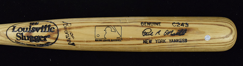 Description:c.2000s Paul O'Neill "game used" baseball bat (Steiner) (EX) Louisville Slugger 125 model C243 bat with O'Neill facsimile signature in the barrel is uncracked with mild scattered use/wear. Includes LOA from Steiner Sports confirming that it was "game used": EX ($400-$600)